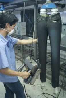而且經過臭氧處理的牛仔系列服裝還有特殊的視覺效果,同時還能處理各類T-shirt;